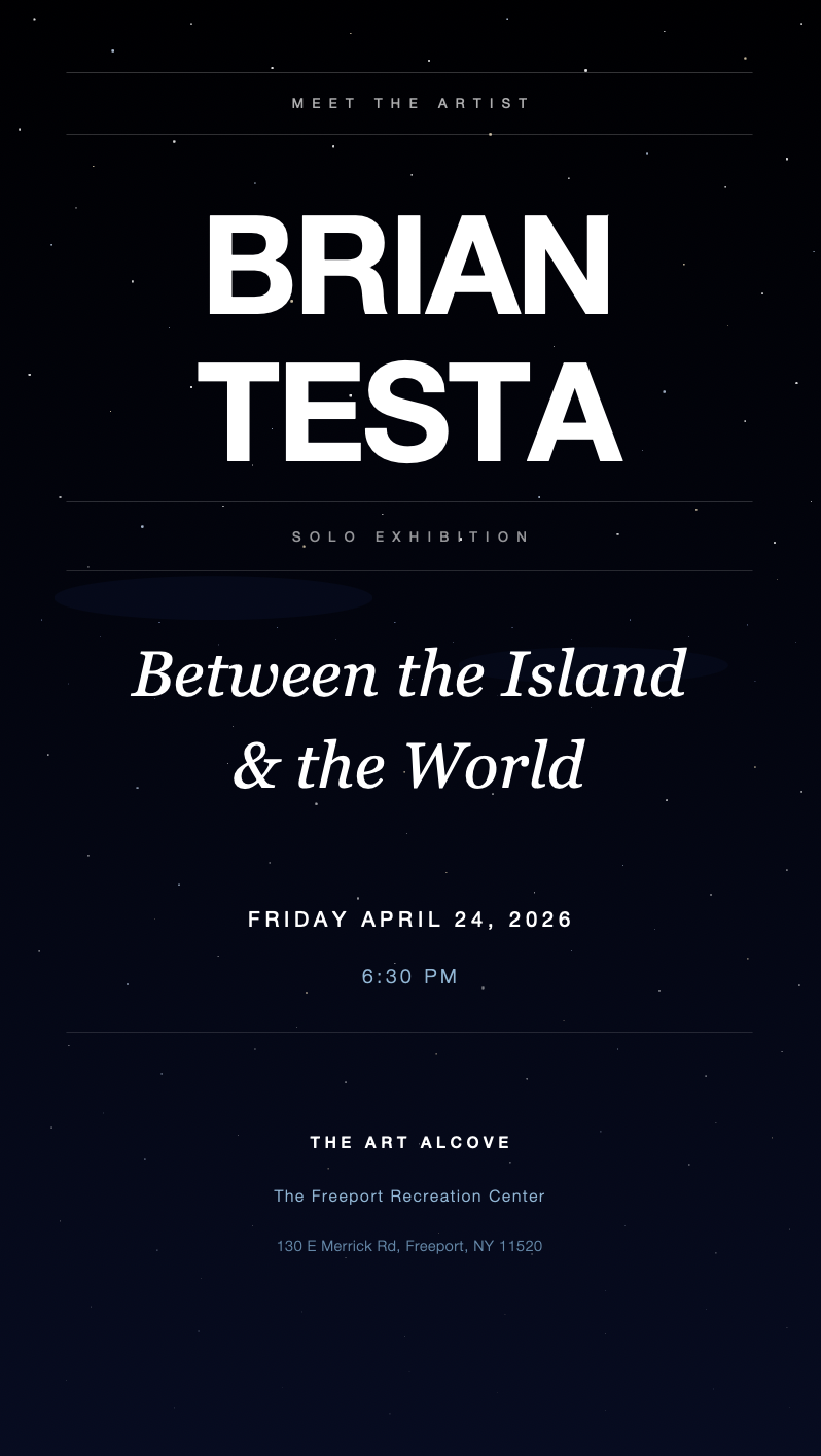 April 2026 Between the Island & the World Meet the Artist:April 24, 2026 6:30PMVenue:The Art Alcove, Freeport Recreation CenterNew YorkSponsor: The Long Island Arts Council at Freeport LIACF